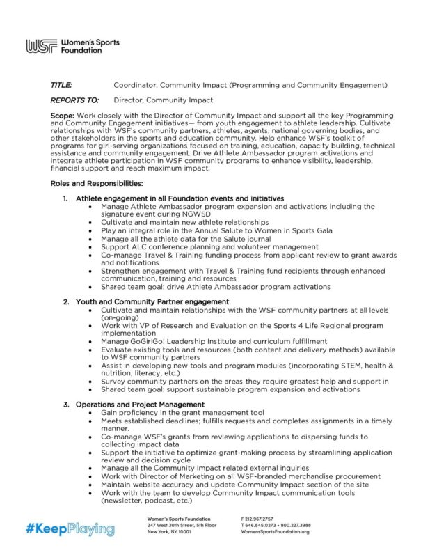 Coordinator, Community Impact 2019 (Final)