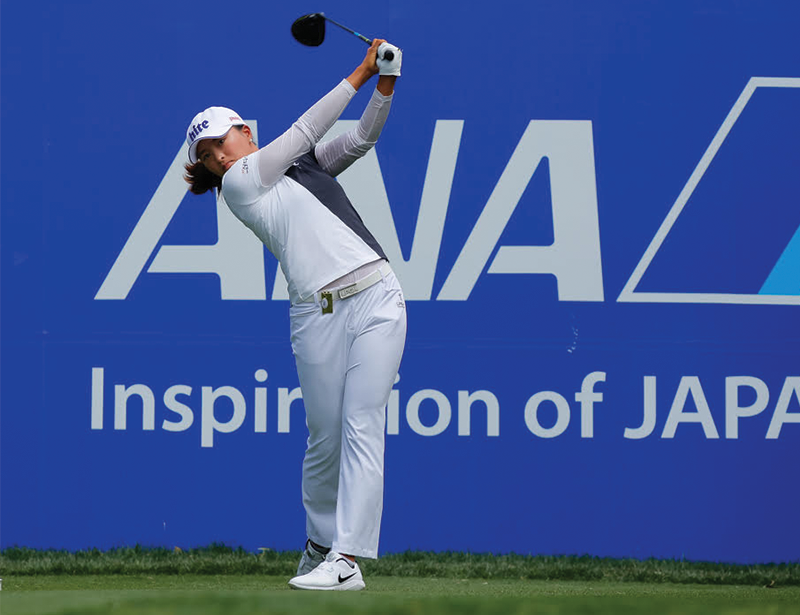 Ko Jin-Young swinging a golf club.