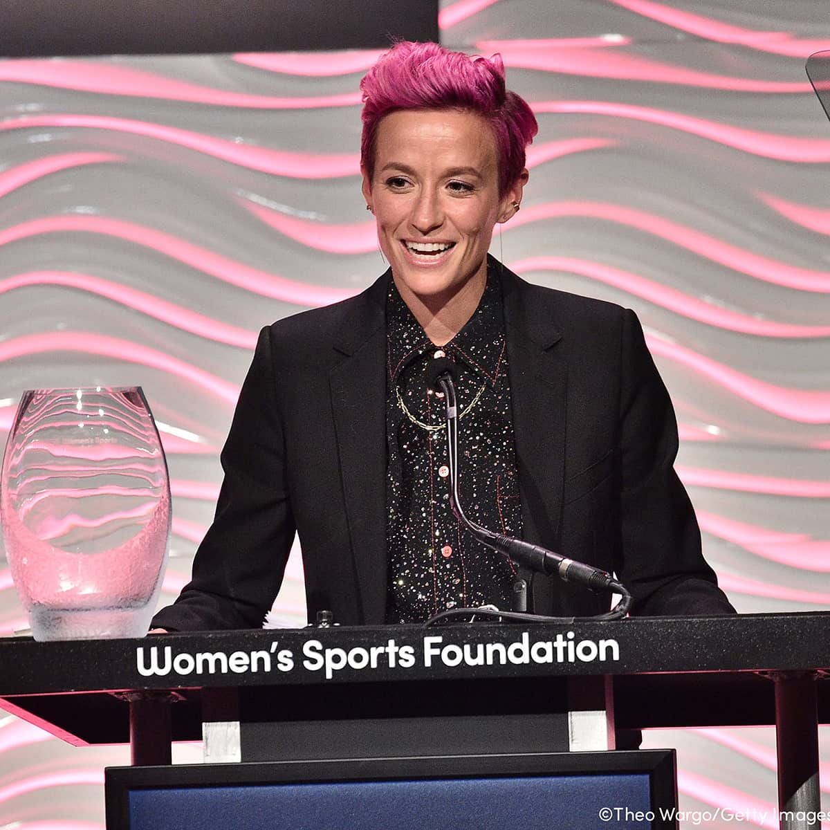 Photo of Megan Rapinoe accepting an award at the WSF Annual Salute